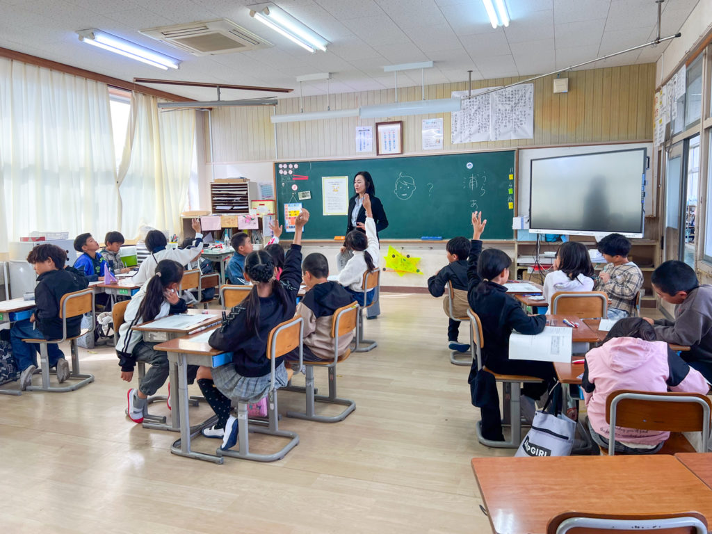 11月には、都農南小学校4年生の各クラスで1回ずつ授業を行いました。授業の冒頭では、