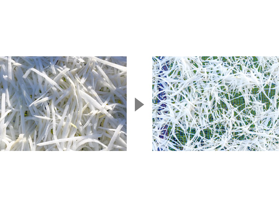 機械に重い大根を入れ、千切りされた大根を均一に並べる作業を、黙々と続ける高齢の方もいると言います。
